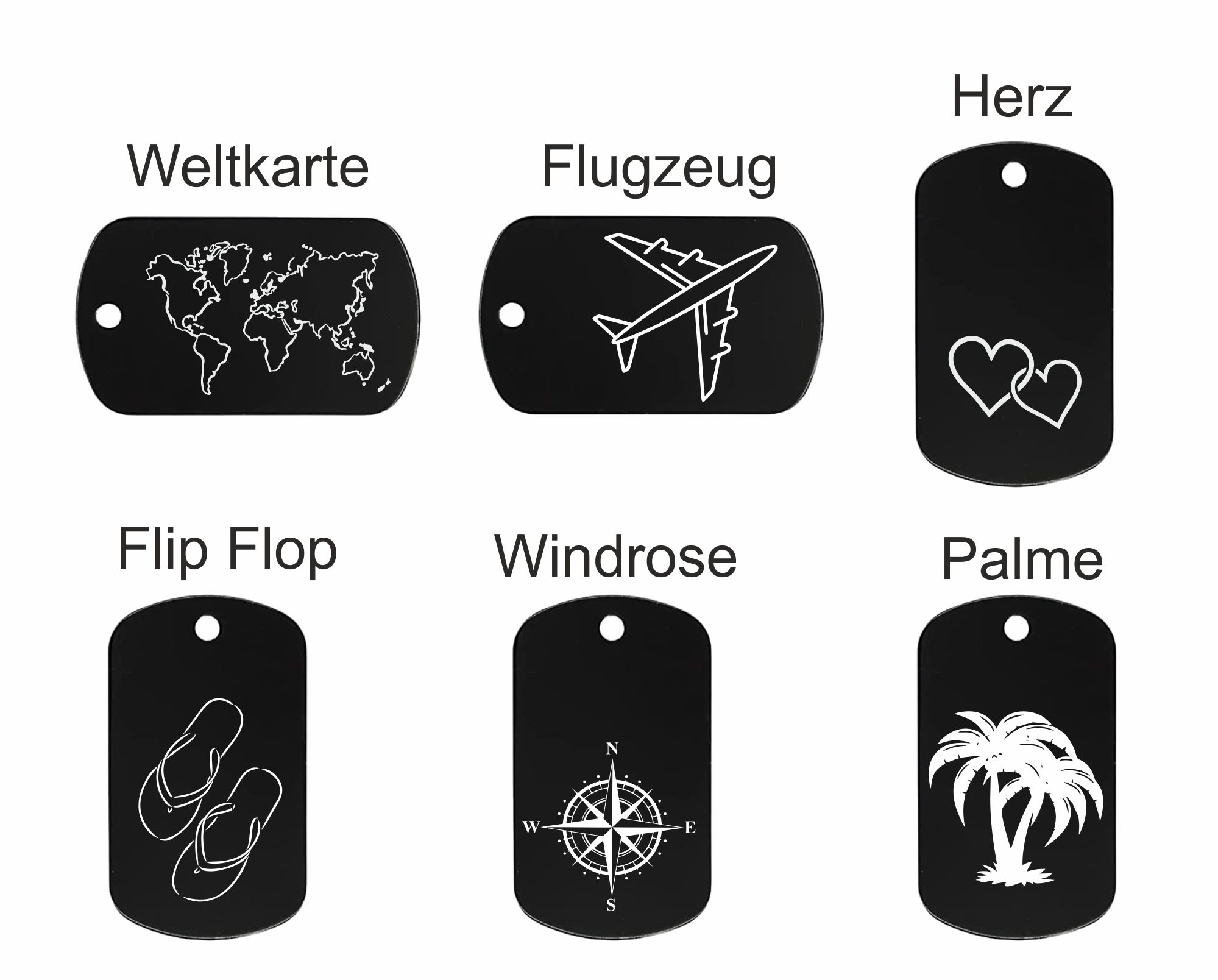 Weltkarte, Windrose, Flugzeug, Palme, FlipFlop, Herz, Vespa, ohne Grafik
